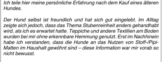 Bitte bedenken Sie, das der Hund hier alles verliert.
